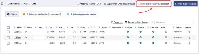 - Une fois l'actualisation du cadastre terminée, procédez à la mise à jour de vos avis. L'actualisation des avis va permettre le rattachement des invariants aux avis de taxe foncière.