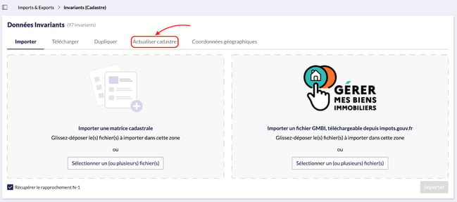 Cette opération met à jour les informations cadastrales et permet le rattachement automatique des invariants aux avis importés. Cela réduit considérablement le nombre d’avis non valides nécessitant des corrections manuelles.