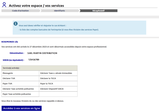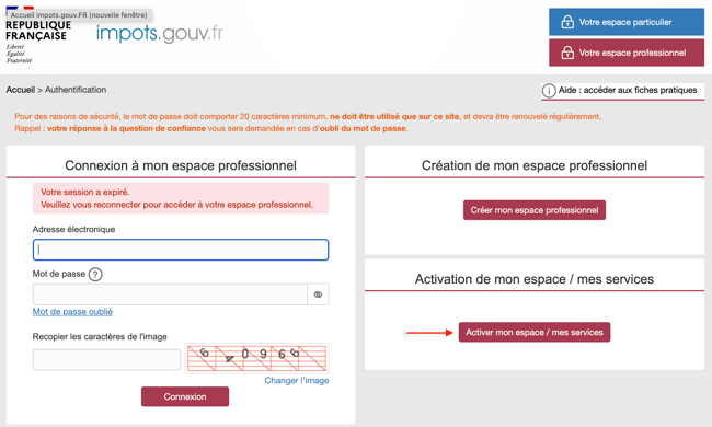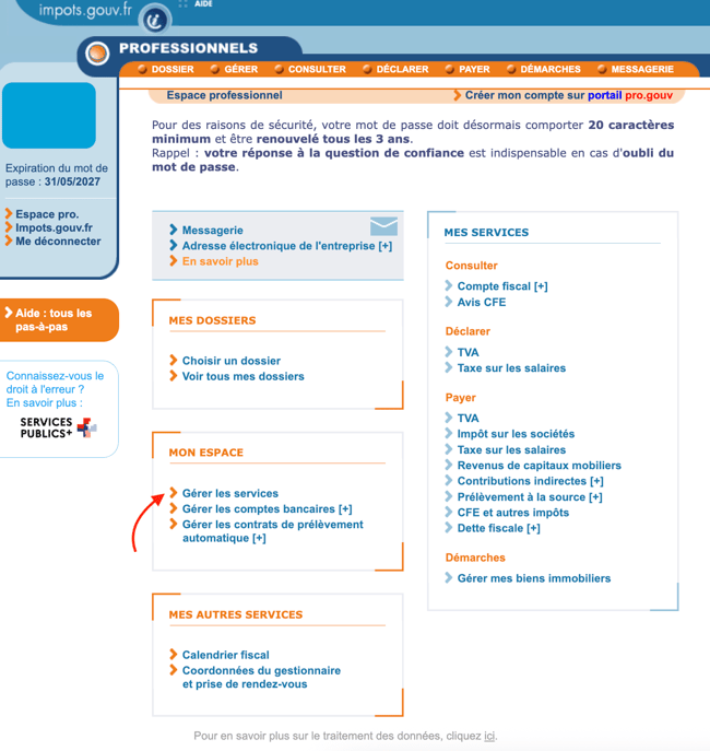Pour activer ces services, aller sur www.impots.gouv.fr