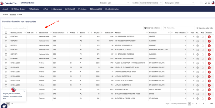 1. Retrouvez les détails de vos parcelles non rapprochées en suivant le chemin suivant : Patrimoine → Parcelles → Parcelles non rapprochées.