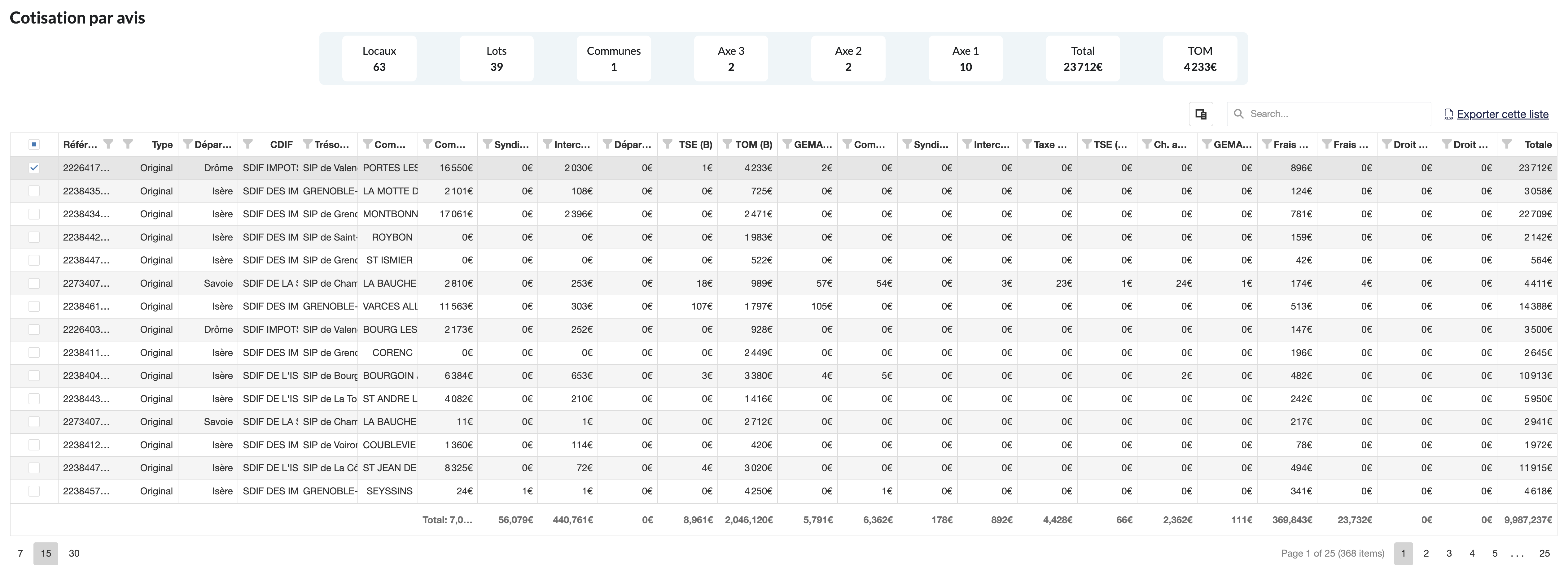 L'édition vous permet de connaitre par numéro d'avis le montant des cotisations par collectivités.