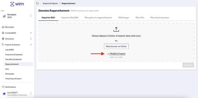- Imports & Exports > Rapprochement > Télécharger le Modèle d’import.