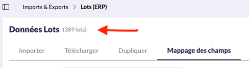- Notez le nombre total de lots déjà importés (dans le cas où vous avez déjà procédé à un import de lots) en suivant le chemin suivant : Imports & Exports > Lots (ERP).