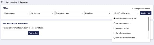 - Suivez le chemin suivant : Parc immobilier > Invariants (Cadastre).