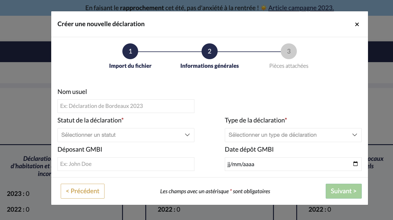 WIM propose un module déclaratif afin d'accompagner nos utilisateurs dans la mise en œuvre des déclarations GMBI (Gérer Mes Biens Immobiliers).