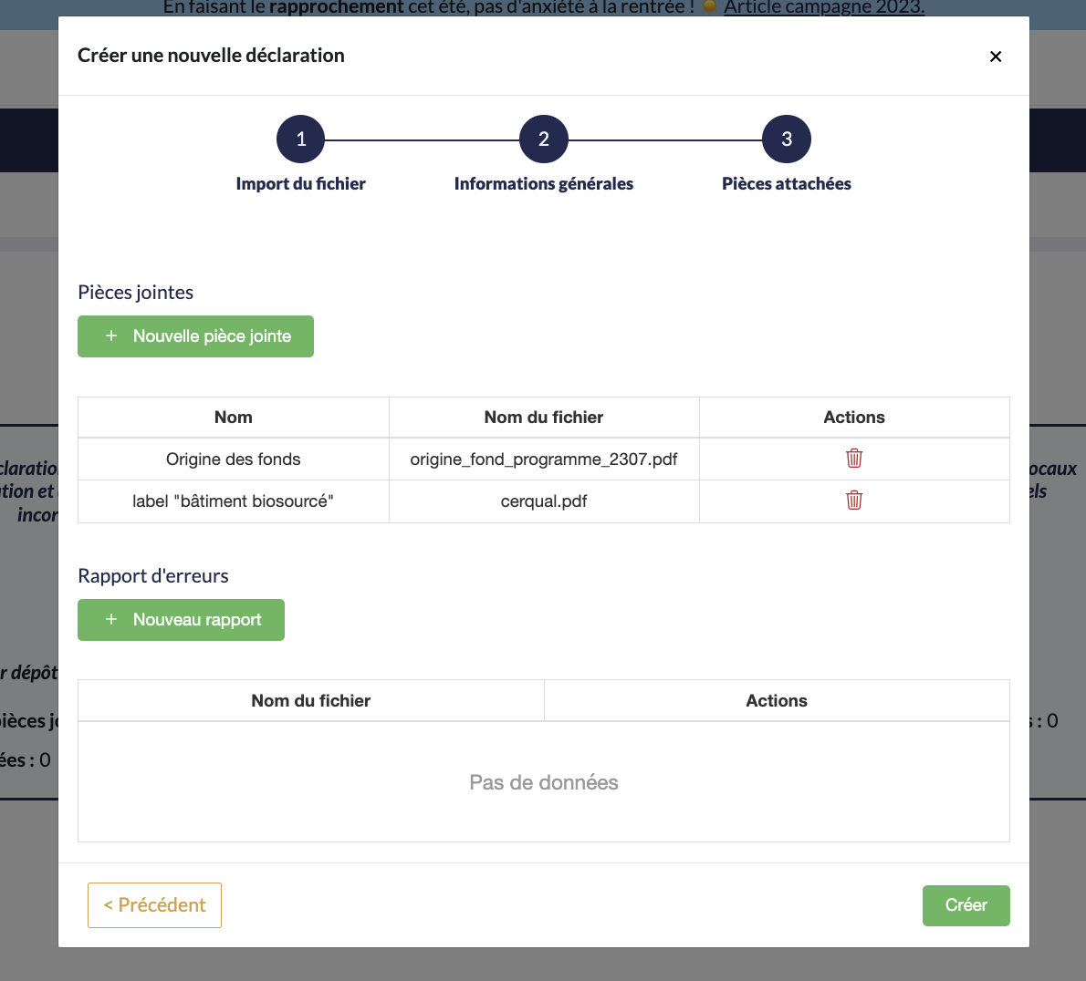 Importez toutes les pièces jointes qui vous seront demandées pour justifier votre déclaration.