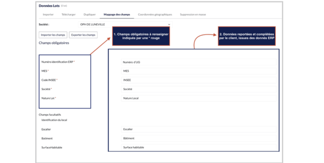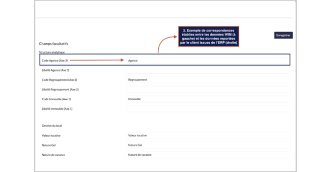 Le mappage des champs permet de faire correspondre les libellés utilisés dans votre fichier ERP avec ceux attendus par WIM.
