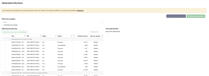 Une fois les avis sélectionnés, vous avez la possibilité de visualiser les écritures grâce au bouton