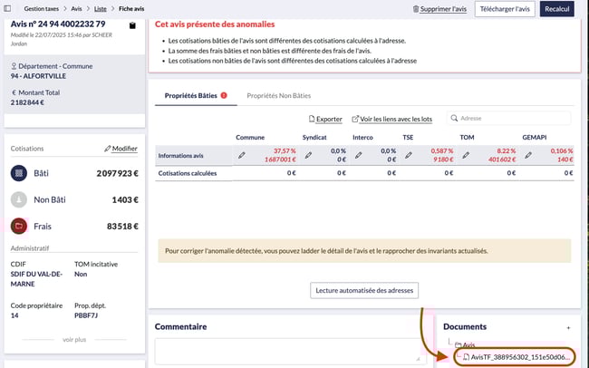 Gérer les Avis de Taxe Foncière dans WIM : Visualisation, Téléchargement, Pièces Jointes et Suppression