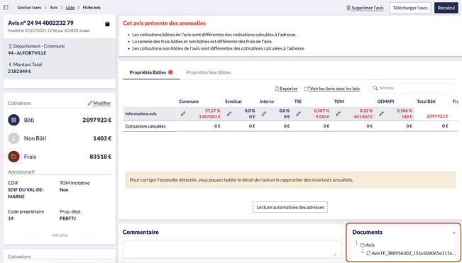Dans WIM, chaque avis de taxe foncière est centralisé et consultable sous forme numérique.