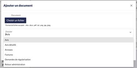 L’interface permet de retrouver rapidement un avis, de le télécharger, de l’annexer à d’autres documents ou de le supprimer si besoin.