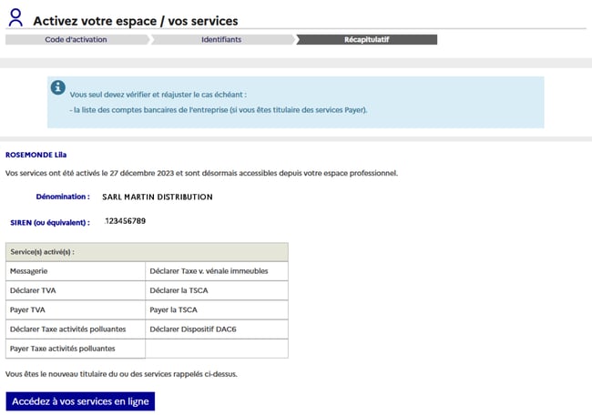 Une confirmation de votre adresse e-mail est requise pour finaliser votre demande. Après validation, le code d’activation reçu par courrier permettra d’activer le service en ligne.
