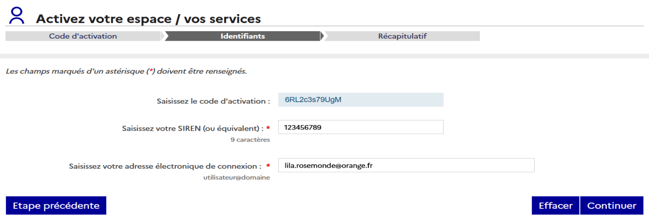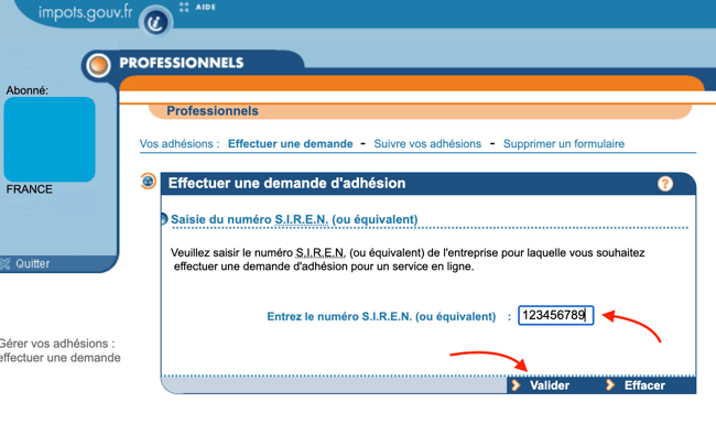 - Saisissez votre numéro de S.I.R.E.N