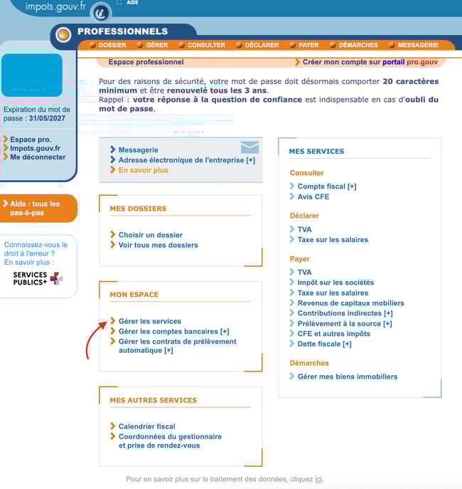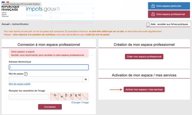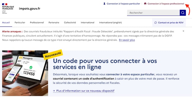 Pour commencer, connectez-vous à votre espace professionnel sur le site officiel des impôts www.impots.gouv.fr.Si vous ne disposez pas encore d’un compte, vous devez en créer un avant de poursuivre.