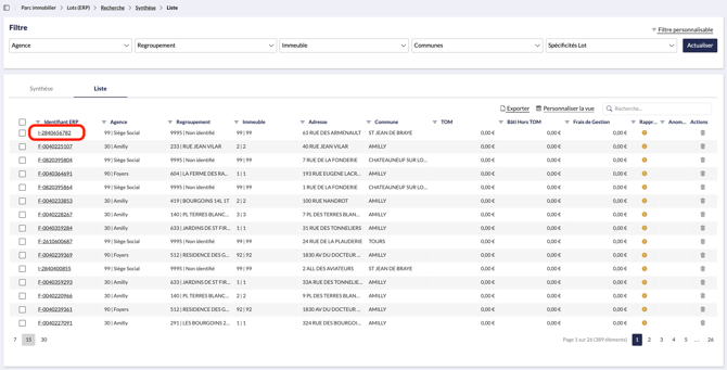 Le numéro du lot correspond au numéro d'ID ERP présent dans votre système de gestion locative.