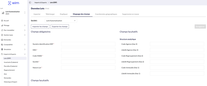 Vous pouvez directement compléter le mappage des champs via l'onglet "Importer les champs" dans Wim.
