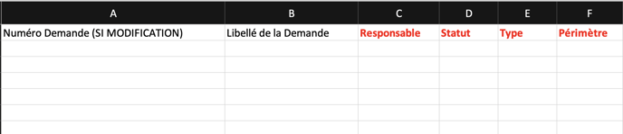 ⚠️ Si l'import a pour objectif de créer de nouvelles demandes, alors le champ doit rester vide.