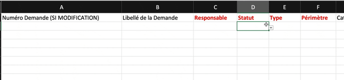 ➡️ La première colonne indique le numéro de la demande. Elle se complète de la manière suivante :