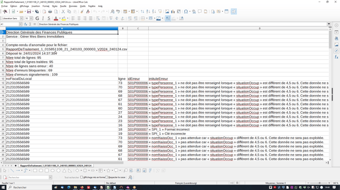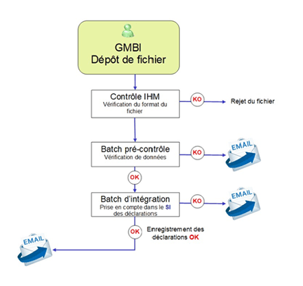 - Bach d’intégration : Création de la déclaration avec identification des erreurs bloquantes et non bloquantes.