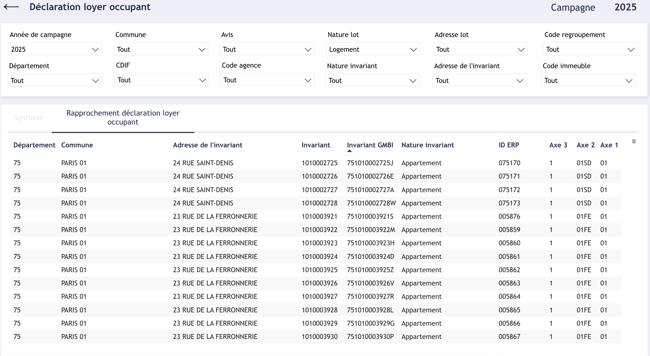 - Depuis Pilotage > Reporting > Données réglementaires et fiscales > Déclaration loyer occupant pour récupérer les ID ERP.
