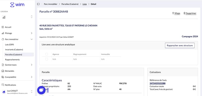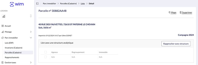 WIM permet d’associer chaque parcelle à une structure analytique (centre de coût, regroupement budgétaire, etc.), ce qui facilite le suivi financier et patrimonial.