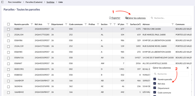 7. Personnaliser les colonnes du tableau de synthèse des parcelles