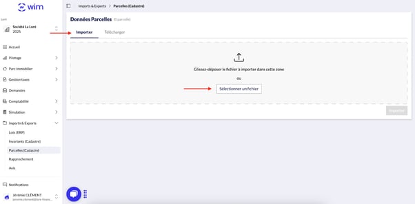- Allez dans Imports & Exports > Parcelles (Cadastre) > Importer.