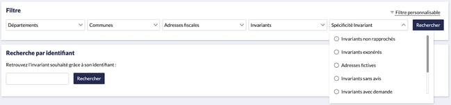 Depuis la liste des invariants dans Parc immobilier > Invariants (Cadastre), vous avez également la possibilité de filtrer uniquement les Invariants non rapprochés :
