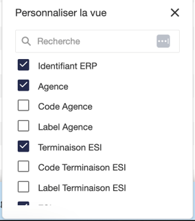 Un onglet s'ouvre, sur celui-ci vous pouvez ajouter des informations supplémentaires à la liste. Par exemple, en cochant "Code Agence", une nouvelle colonne apparaîtra pour chaque lot avec cette indication.