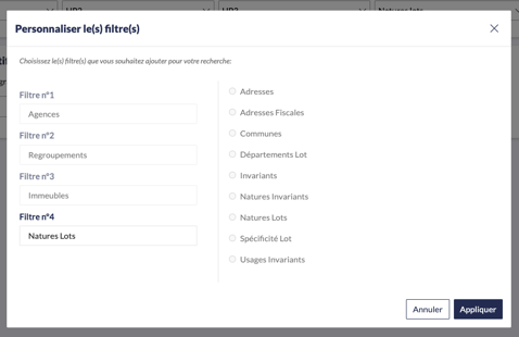 Un onglet s'ouvre, choisissez le ou les filtres à ajouter à votre recherche parmi la liste à droite.