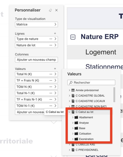 Sur le tableau principal et le tableau Cotisations N par nature de lot :