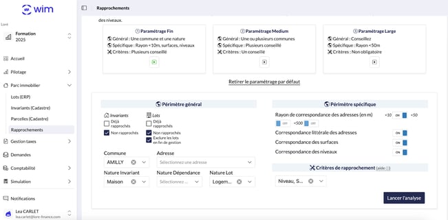 Le module de rapprochement de WIM est un outil essentiel qui permet de concilier vos données internes (issues de votre ERP) avec les informations officielles du cadastre.