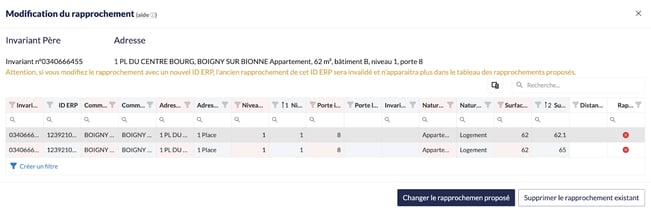 Possibilité de modifier les rapprochements proposés :