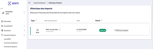- Vérifiez l’Historique d’Import (Imports & Exports > Historique d’Import),