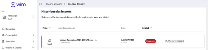 Votre fichier ne s’importe pas et apparaît avec le statut “en erreur” dans l’historique d’import ?
