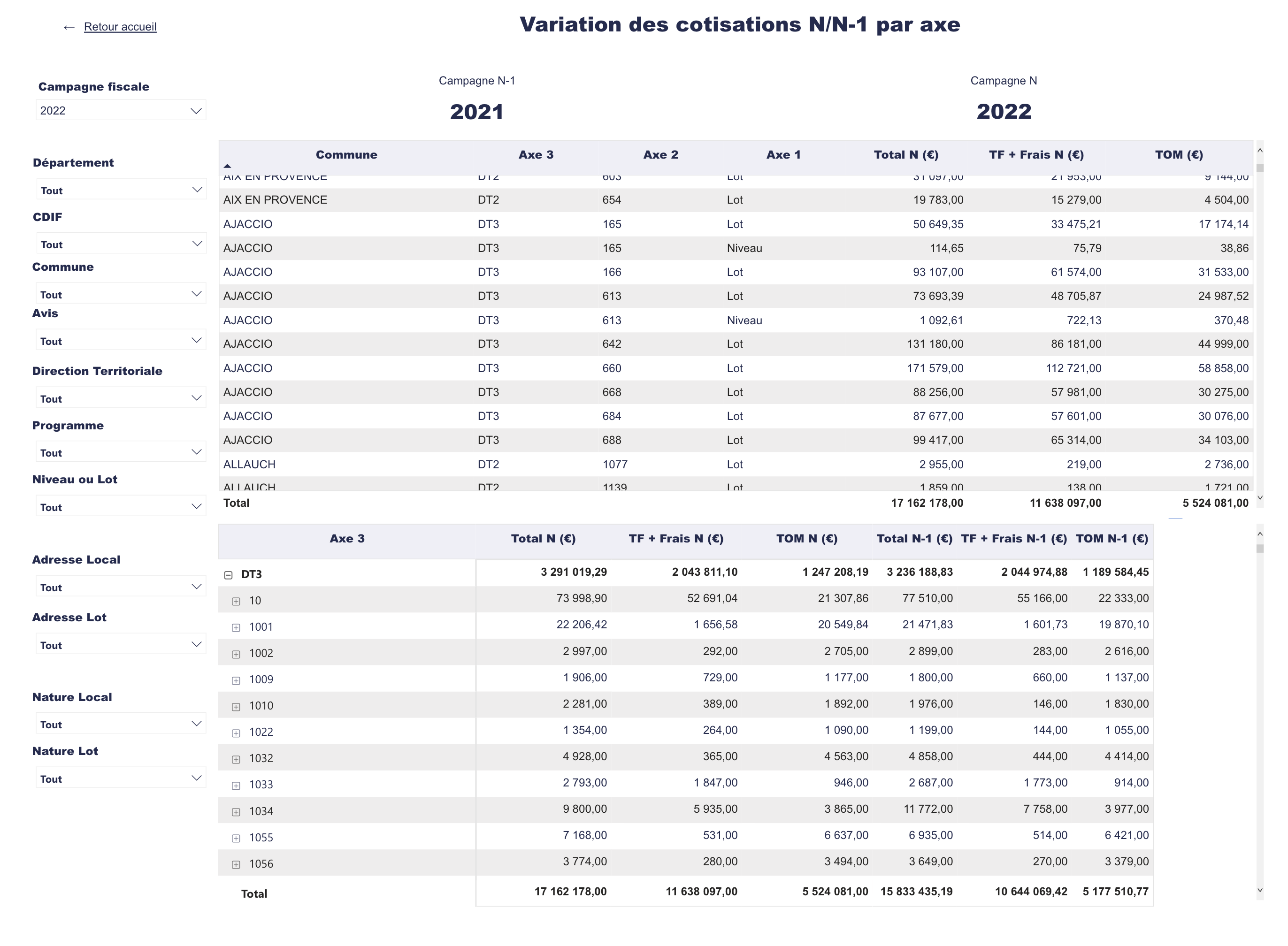 Avec cette édition, vous allez pouvoir extraire les cotisations par axe analytique sur l'année N et N-1 afin de :